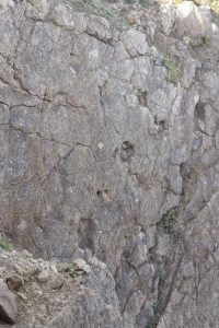 The dinosaurs did not of course walk like lizards, up the walls. They walked on muddy and horizontal ground, imprinting their footsteps on the ground that was then covered by layers of sediments. When the Sintra Mountain was formed, the grounds were deformed and raised – and consequently the top layers crumbled away, leaving once again the layer with the footprints uncovered for everyone to see.