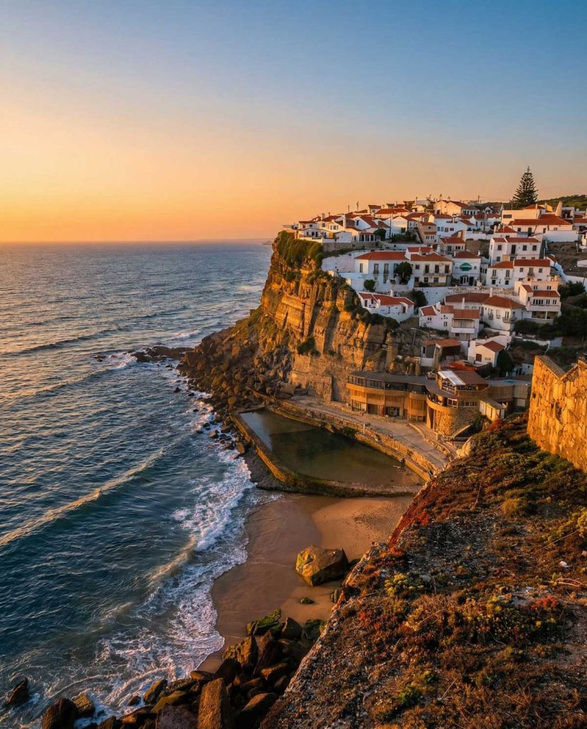To end the day in an unforgettable way, the sunset at Azenhas do Mar is simply magical. White houses perched on the cliffs, the sound of the ocean and the golden light create one of the most romantic scenes in Portugal.