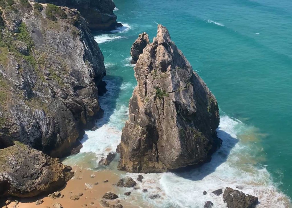 Along this route, before reaching the Fojo, you’ll find the Caneiro Beach Viewpoint, one of the region’s best-kept secrets. Located between Ursa Beach and Adraga Beach, this viewpoint sits at a high point with difficult access. The path requires an adventurous spirit, but the reward is one of the wildest and most unspoilt coastal landscapes in Portugal, perfect for watching the sunset.